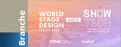 Die World Stage Design 2029 wird im Mai/Juni 2029 in Berlin stattfinden – in enger Synergie mit der SHOWTECH, der internationalen Fachmesse für Theater- und Bühnentechnik.
