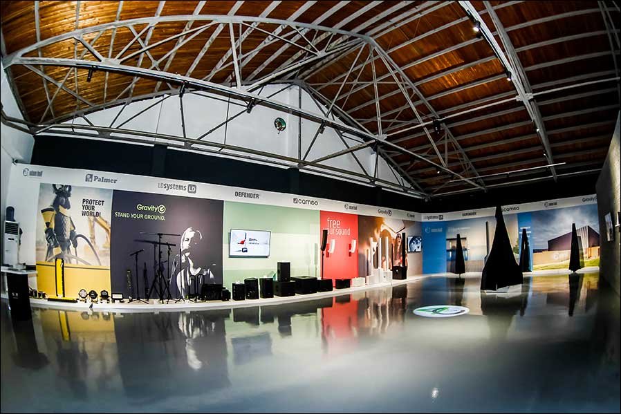 In der Ausstellungshalle wurde den Experten und VIP-Kunden, das Produkt-Highlight aus dem Audiobereich der Adam Hall Group präsentiert, das PA-Säulensystem MAUI P900.