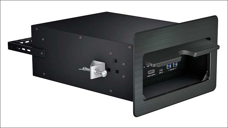 Für den Einbau in Konferenzmöbel ist ein elegantes Einbaukit optional verfügbar.