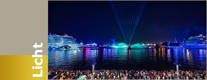 Beim Tanz zweier Kreuzfahrtschiffe der der Inszenierung "Pas de deux on blue" im „Blue Port Hamburg“ setzte Flo Erdmann die Proteus Excalibur von ELATION ein. mehr» about Schiffs-Tanz mit viel Licht von ELATION