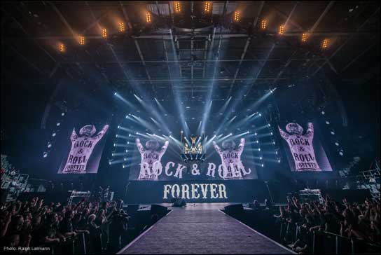 "Das Design der Bühne setzt sich primär aus der klassischen Rock’n’Roll-Mischung zwischen Spot und Wash beziehungsweise Strobes und Blindern zusammen", kommentierte Nikitser. "Dazu kommen noch Beams und weitere Effekte. Im ersten Eindruck dominiert Video den Look.