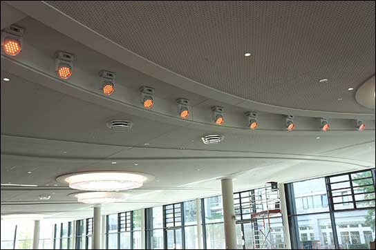 Feiner Lichttechnik konzipiert für Böhringer Ingelheim flexible Bühnenausleuchtung mit drei verschiedenen Lichtzonen.
