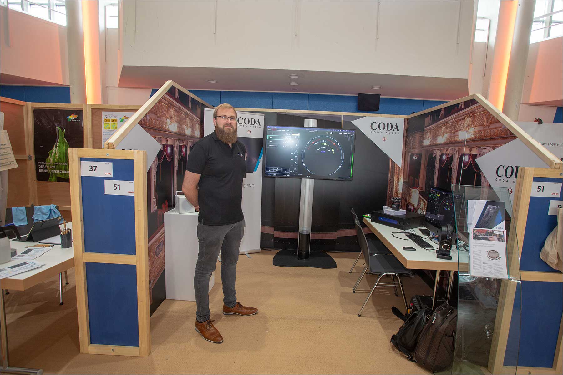 Sebastian Bähr von CODA Audio mit dem SPACE HUB Prozessor.