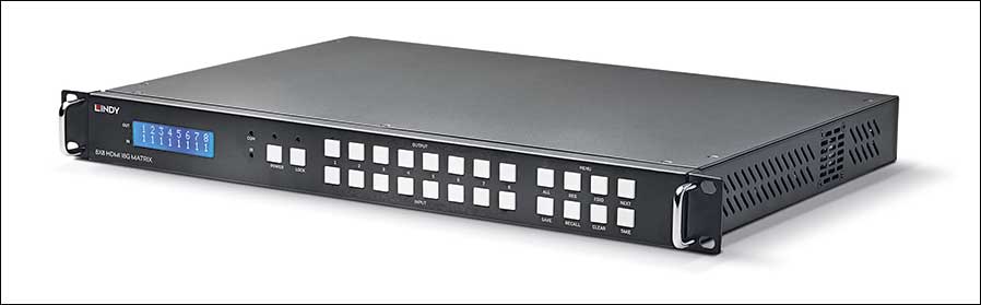 Mit dem neuen "8x8 Seamless Matrix Switch" für bis zu acht Teilbilder auf einer Video-Wall mit 4K UHD kommt Lindy zur ISE 2020 nach Amsterdam.