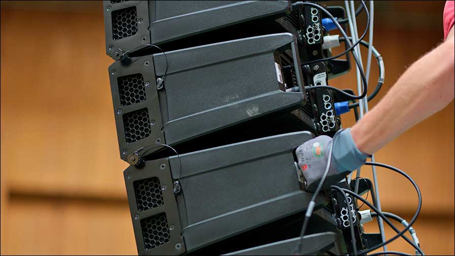 Dazu wurden rechts und links der Bühne je neun HDL 26-A-Module geflogen. Eine TT 25-A II-Fullrange-Box wurde hängend zentral über der Bühnen als Fill platziert.