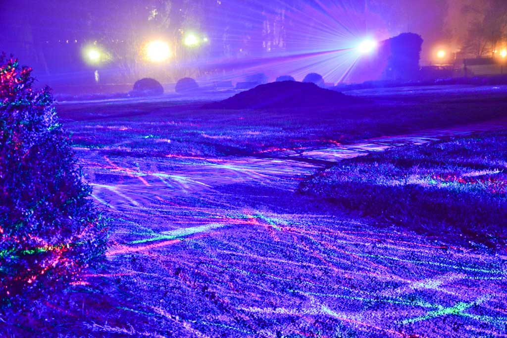 Video-Mapping und Video-Projektionen wurden direkt auf Gebäudefassaden projiziert, und im Park der Orangerie wurden zusätzlich Laserprojektionen gezeigt.