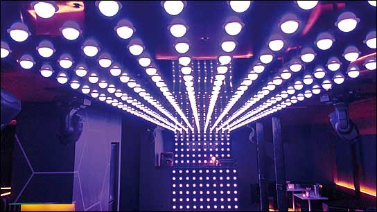 Kürzlich folgte eine weitere Installation in einem in Club in Glasgow, England, dessen Decke und Wände mit 730 Stück LD-5 Domes bestückt wurden, ebenfalls angesteuert per Madrix Software mit ihren großartigen Sound-generierten Effekten.