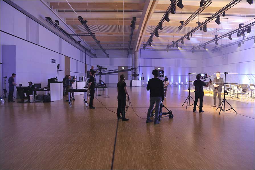 Um das Audi Sommerkonzert in der Betriebsversammlungshalle zu filmen, wurden acht Kameras eingesetzt. Neben den Studiokameras kamen auch etwas einfachere Schwenk-Neigekameras zum Einsatz und dazu eine mobile Sony-Alpha-Kamera, die vom Farbraum her noch mal komplett anders ist.