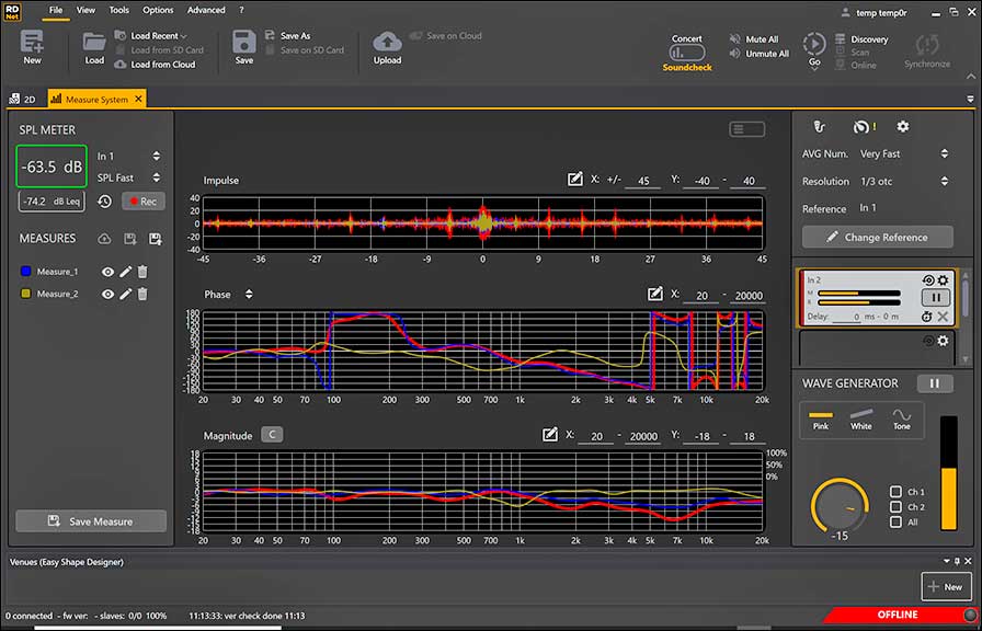 Darüber hinaus gibt es einen Delay-Finder zum einfachen Time/Phase-Alignment, die Möglichkeit der Anzeige und Aufzeichnung beziehungsweise zum Export des Schallpegels und die Kalibrierung der Schallpegelmessung.