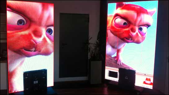 LED-Wände im Vergleich: Links 6 mm und rechts die 3-mm-Version.