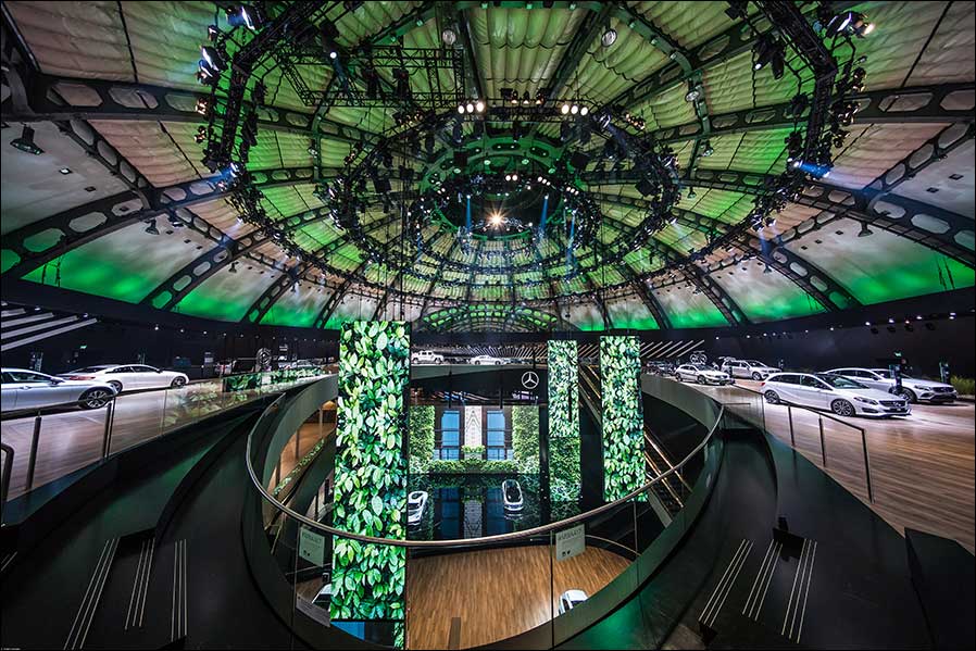 IAA-Stand der Daimler AG: Für die Beleuchtung der Festhallen-Kuppel kamen ausschließlich Leuchten von SGM zum Einsatz (Foto: Ralph Larmann)