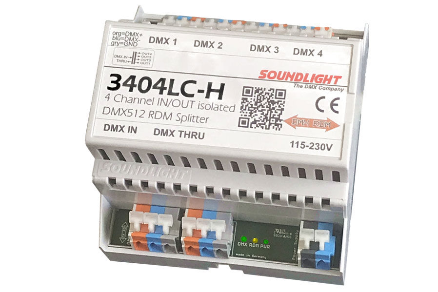 Der neue DMX Splitter 3404LC-H von SOUNDLIGHT wurde auf DMX RDM umgerüstet. Zudem ist er kleiner, leistungsfähiger und zieht weniger Strom aus der Steckdose.